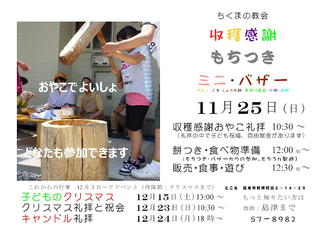 礼拝後、餅つき、ミニバザーを一緒にします。